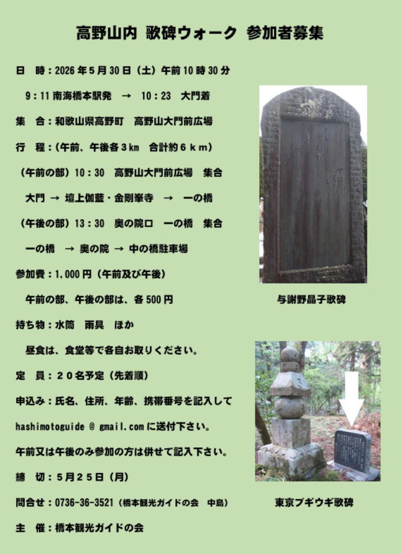 問合せ 橋本観光ガイドの会(中島) TEL 0736-36-3521