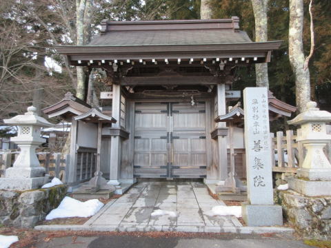 山門前の案内石碑には、「南山教学祖 宥快法印遺跡 準別格本山 善集院」(ぜんじゅういん)と刻されている。