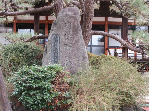 本堂前には、「内侍所之跡 正二位大勲位侯爵 松方正義書」と記した石碑がある。