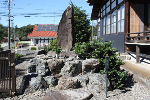 本堂前には、親鸞聖人の像が建てられており、横の石碑には、親鸞聖人の歌が記されている。