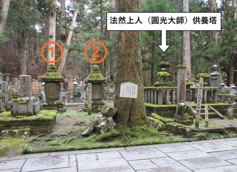 奥の院32町石南の 法然上人(圓光大師)供養塔に隣接(一の橋側)している。