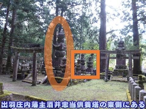 出羽庄内藩主酒井忠当供養塔の東側、出羽庄内藩主酒井忠義供養塔の北側に位置する。