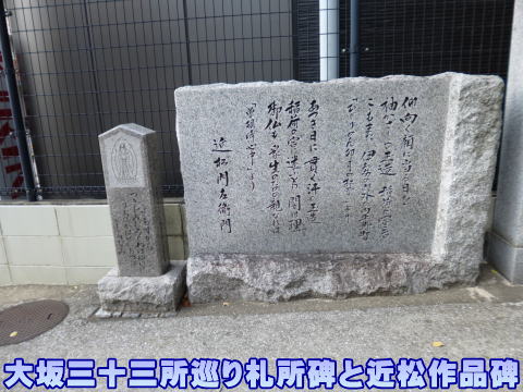 また参道横には、大坂三十三所巡り・第十番札所碑と近松門左衛門の作品碑(「卯月の紅葉」「曽根崎心中」)がある。