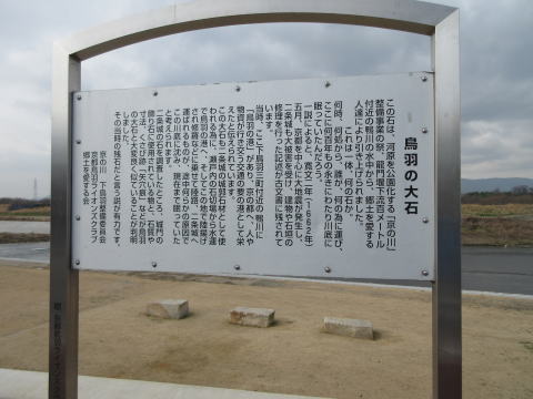 鳥羽の大石は、京都市伏見区下鳥羽三町の鴨川東岸河川敷にある。